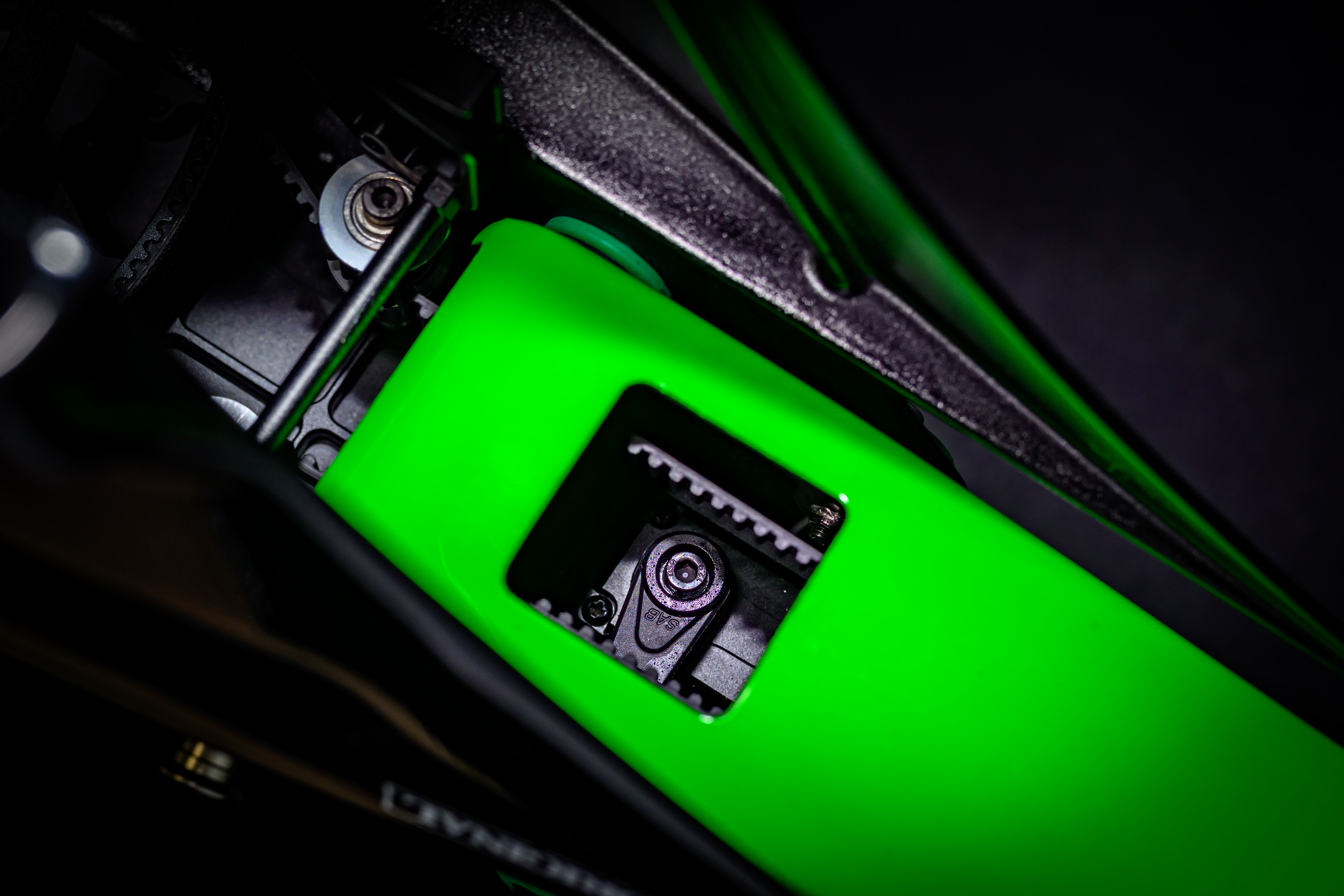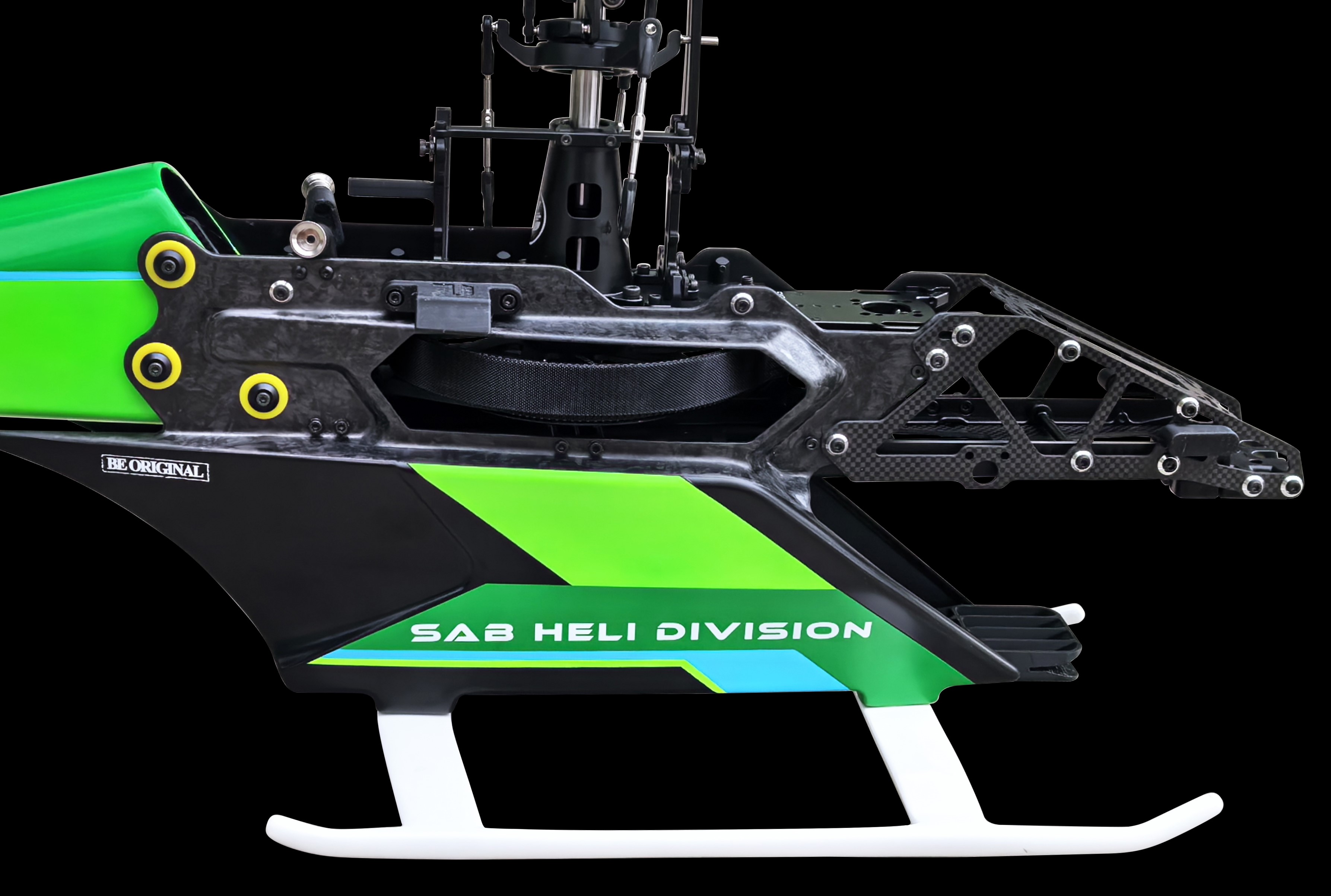 Tail servo located inside the tail boom allows the carbon tail push rod become “invisible” inside the tail boom as well.