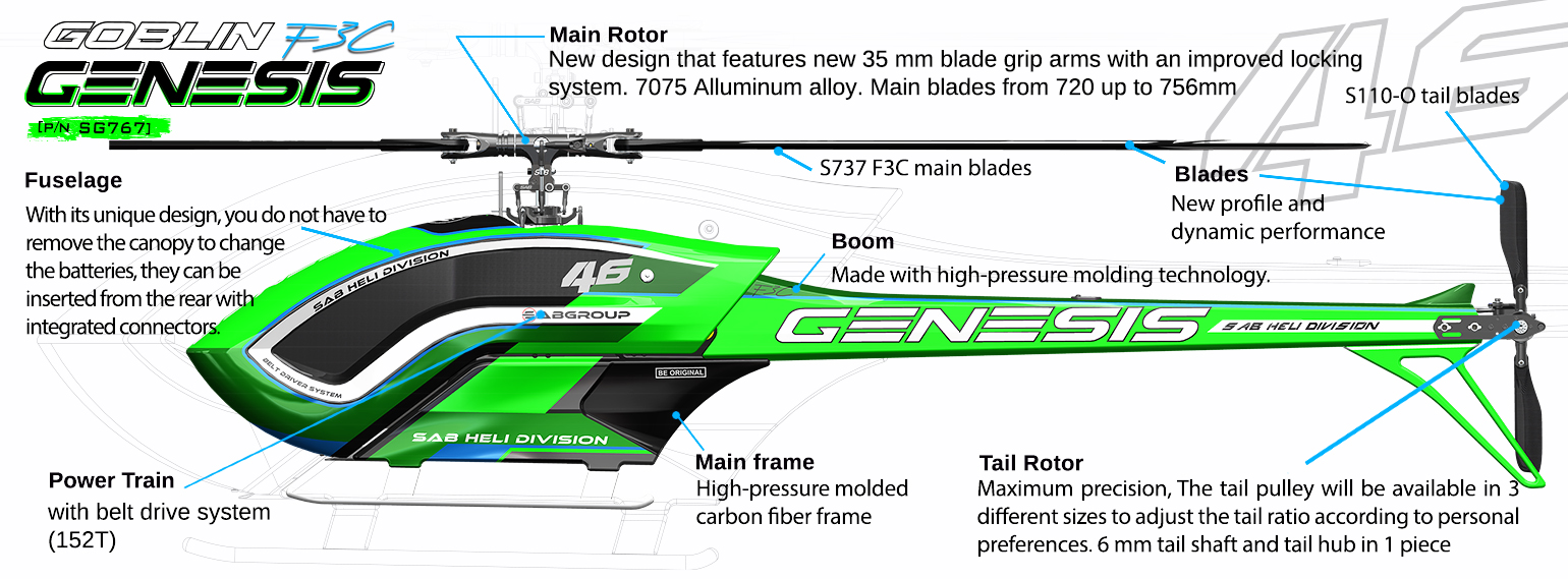The Genesis F3C is a no-compromise model, developed specifically for F3C competition. Every detail is designed to deliver maximum precision, quiet operation, vibration control, and outstanding flight presence.