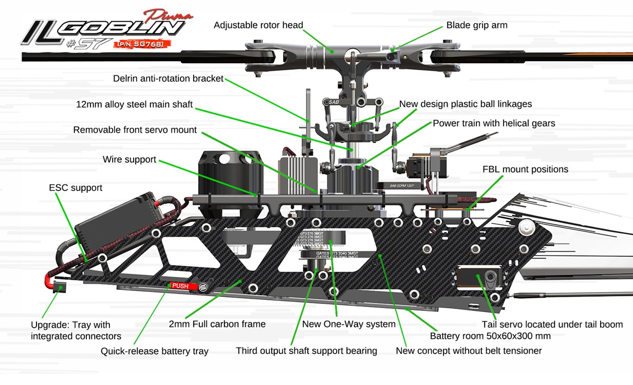 Direct tail rotor transmission without idler pulley for maximum smoothness.